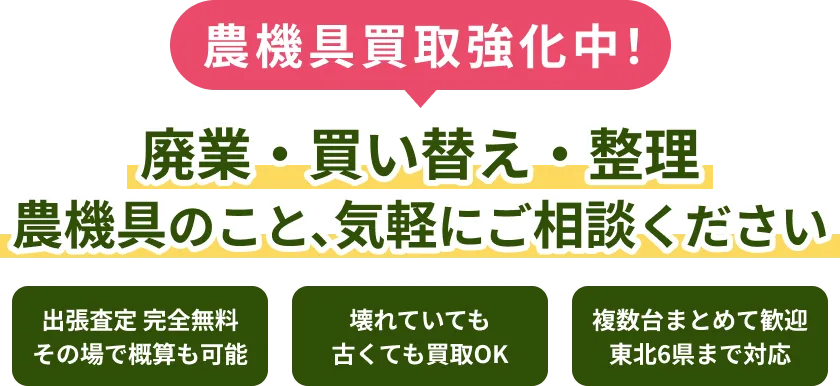長年使ってきた農機具を手放すことは、大きな決断です。状況やお気持ちに寄り添いながら、無理のない形でサポートいたします。
