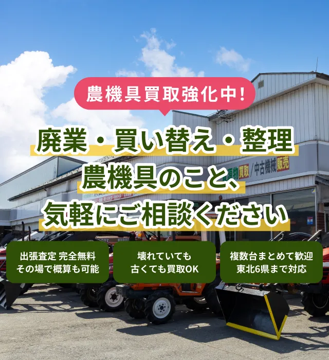 廃業や買い替えによる売却から、中古農機をお探しの方まで幅広く対応。